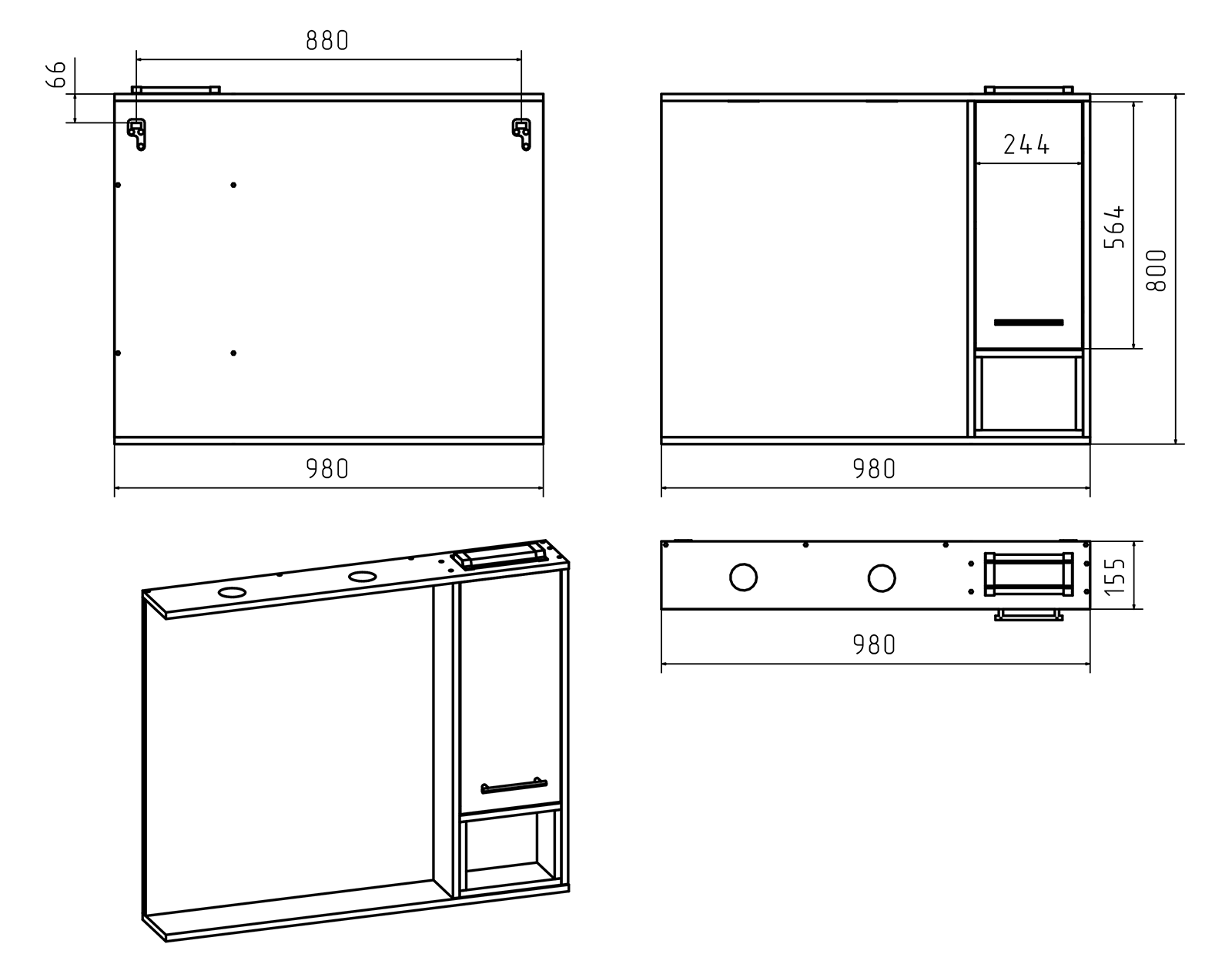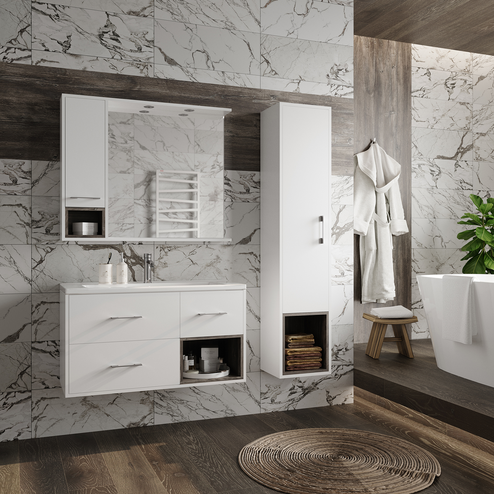 Зеркало-шкаф Misty Фетта 100 с нишей белый правый